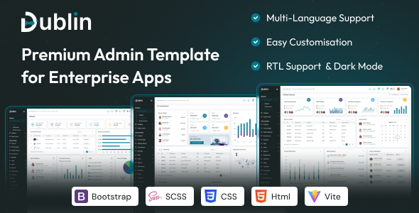Dublin Admin is a full featured, multipurpose, premium Bootstrap admin template built with Bootstrap 5 Framework.It has a huge collection of reusable UI components and integrated with latest plugins. It can be used for all type of Web applications like custom admin panel, app backend, CMS or CRM.